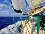 Not much wind in the wee morning hours, so we motored for several hours. We’ve altered course a bit to be able to sail. Now on a heading of 286ºT. Just hoisted the sails at a little before 9 a.m. local time. It’s so nice to hear just the wind and the water.