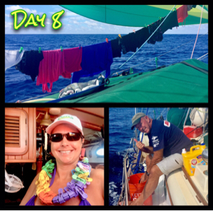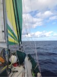 4.2.18 @ 1000 Local, 1700 Zulú Day #8 Latitude: 14°57 N Longitude: 117°11 W Covered Distance Last 24 Hours: 101 NM Distance to the Marquesas: 1962 Distance from Punta de Mita, Mexico: 854 NM Weather: Sunny with 30% Cloud Cover Winds: N 11 Knots Sea State: 1’ – 3’ Barometer: 1014 Crew’s Mood: Finer than frog hair! Ever seen hair on a frog? That’s fine!