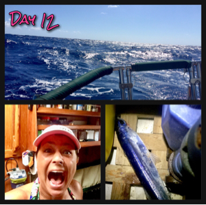 Yes, it appears the trade winds are upon and with this comes a whole new way of sailing. We’re in 13 – 20 knot winds and the swells are reaching upwards of eight to ten feet. It sounds worse than it is as they are long rollers so you just kind of drift up and down on them. Once you get used to the rhythm it’s a piece of cake, unless, of course, you’re in the galley.