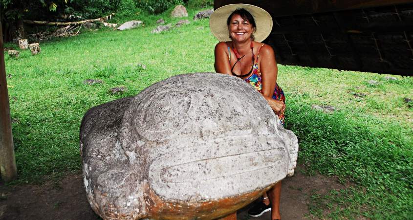 Seeing the island from the water is amazing no doubt, but we heard that renting a car and traversing the island inland was awesome as well. The “place to go” according to other cruisers is to see the tikis at Puamu’a. We hook up with Helen & Ian of SV Nightide and rent a car for a couple of days. On the northeast end of the island at Pauma’u is an ancient site called Me’ae Iipona where they have the second largest tiki in Polynesia. The largest is on Easter Island.