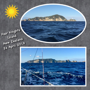 We passed Poor Knights Island just before sunset. We were about 1.25 miles away. The rocky cliffs had taken on a golden hue as the glow of the afternoon sun beamed upon their jagged faces. The white foam of the ocean was beating upon the shore and it was a magnificent sight to behold.