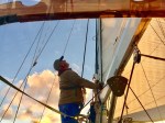 It has been a pleasant sail during our first 24 hour period from Tonga on our way to Fiji. The winds have been all over the place between 4-14 knots from the south southeast. It wasn’t until this morning that the winds began to have a consistent velocity. So what do you do? That’s right sparky….Dig out the asymmetrical spinnaker and rig it up for the downwind.