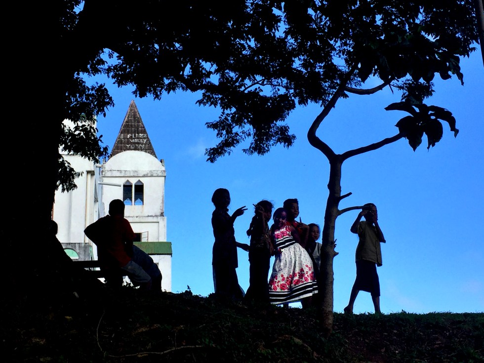 This village is pretty small. There were probably only about twenty houses on it and it was rather stretched out. As we approached the shore we could hear singing coming from the church. It’s Sunday so we knew the majority of the people would be in this very large Methodist church up on the hill. The singing was beautiful even if we didn’t understand the words.