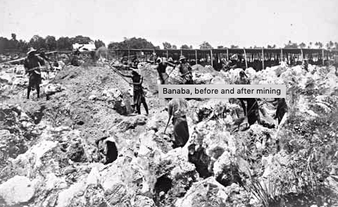 The above are photos of Banaba Island before the mining and then after the island was ravaged by mining companies. These photos are share courtesy of: Ministry For Cultural Heritage. All rights to the photos belong to: Alexander Turnbull Library, Colville Collection