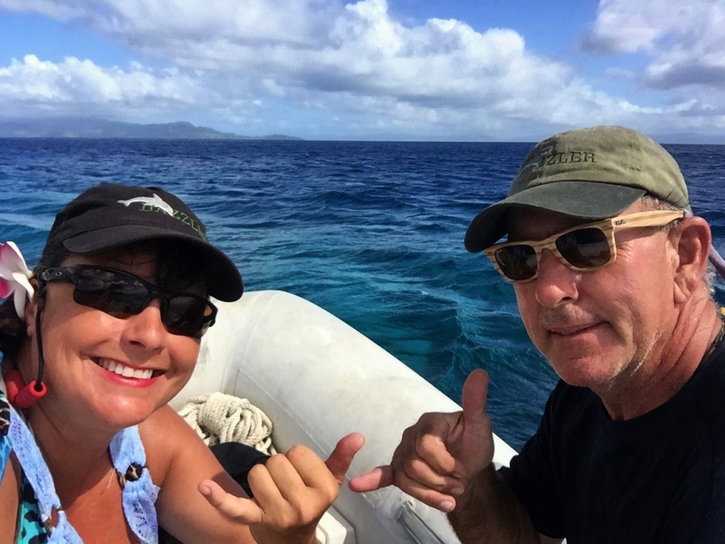 That night after a full day of visiting, swimming and beach walking we had Lutz and Gabi over to Dazzler for dinner. Dan made his fabulously tasty stir fry chicken which was devoured by these four adventurous souls. After dinner I asked them if they would mind participating in a Dazzler tradition where we scatter some of my father’s ashes. This island is one that struck a chord with me and I felt it was a perfect place for this. They agreed and we scattered one more vial of Dad’s ashes in the lagoon and afterward I shared stories of my father, which kept them rather entertained.