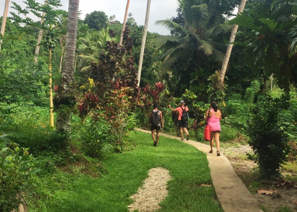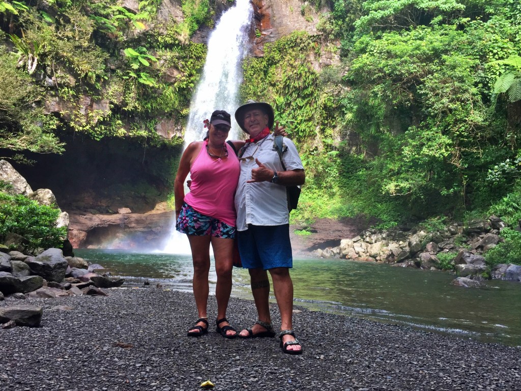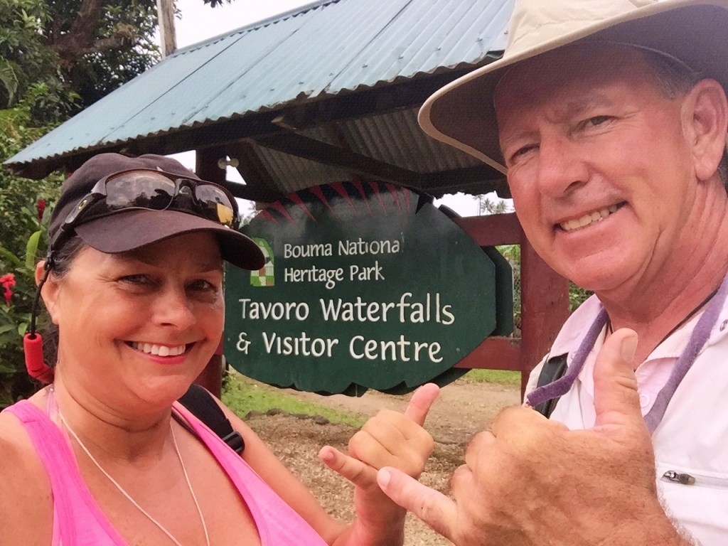 This morning Lutz and Gabi pick us up with their tender at 0830. We’ve gotten into the habit of only putting one tender in the water at each anchorage and we take turns….it’s their turn. Anyway, we head to shore. As we approach the shore Chief Isimeli’s first-born son, John, is waiting for us in his truck. While the chief arranged for John to drive us there is a fee. It’s one we are happy to pay at just $10 Fijian dollars each way. John is taking us to the world famous Tavoro Waterfalls At Bouma National Heritage Park. It is just 3-4 kilometers from the village where we left the dink but it’s a hilly road and it’s good to have transportation especially when you know there is a long, uphill hike ahead of you.