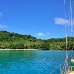 Yesterday we arrived here at Vurevure Bay. It’s a wonderful little bay on the east side of Taveuni Island here in Northern Fiji. SV SuAn and SV Dazzler are the only boats here. Of course, as usual we anchored, had our anchor down libations and then headed to shore to do sevusevu with the chief. On shore we were met by a gaggle of young children who were playing on the beach. One young boy probably eight or ten years old took the lead and escorted us to the home of the chief. Chief Isimeli, his wife Elizabeth and his sons John and Sanaila graciously welcomed us into their home.