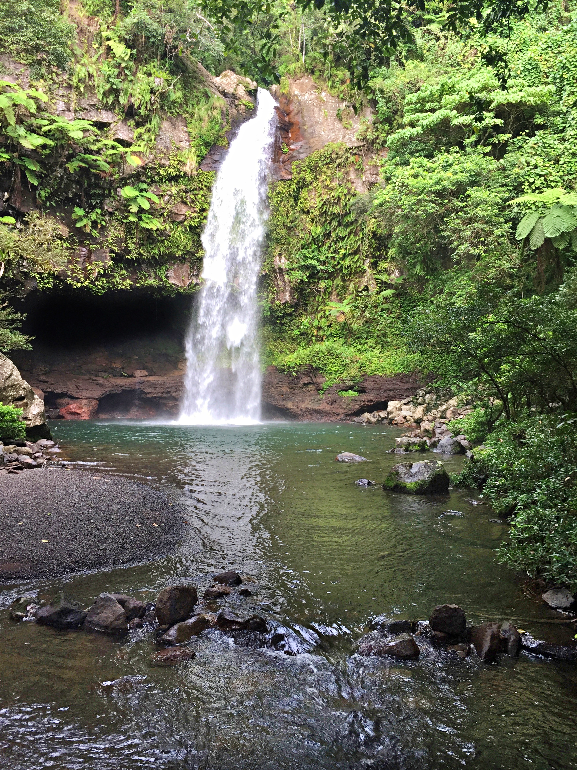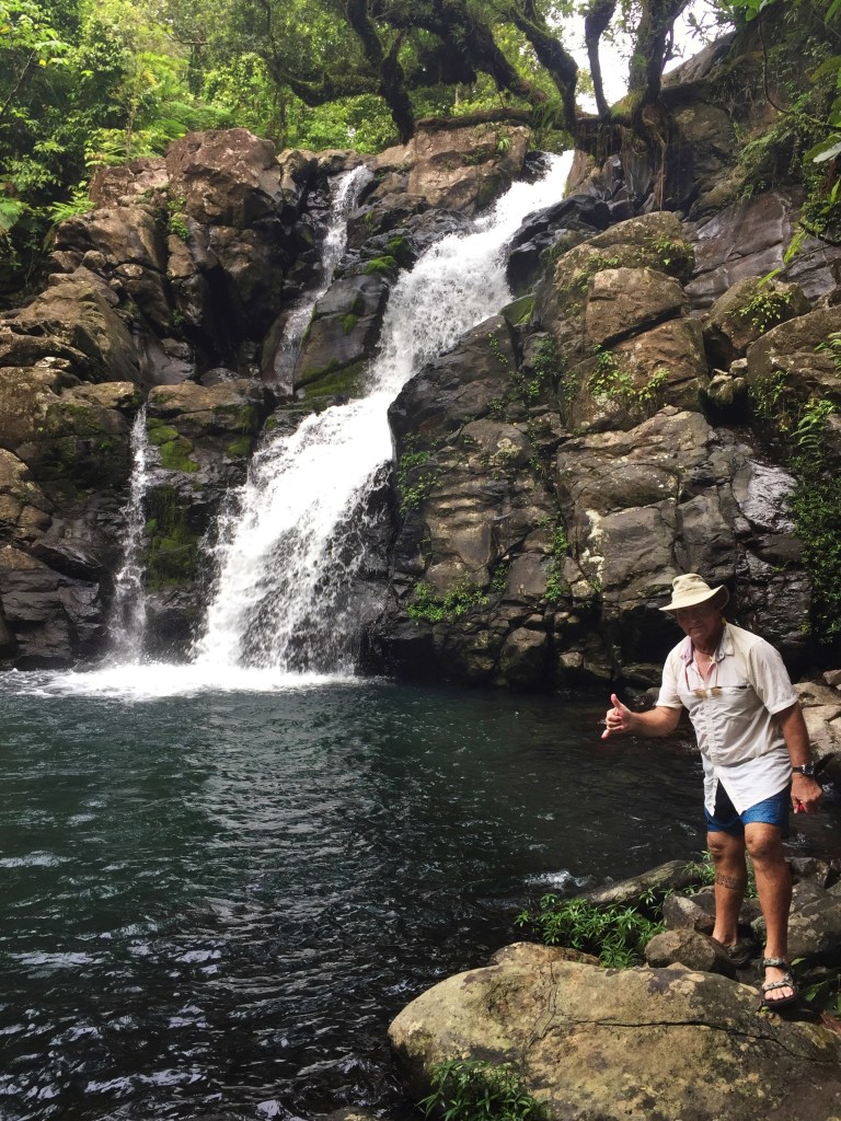 It’s just a short 10 or 15 minute hike to the first waterfall (seen in the movie) which is absolutely amazing! It is 24 meters high and falls into a beautiful clear pool over black sand. This is the first island in Fiji where we’ve encountered black sand. It’s actually very pretty. This spot is so beautiful I could stay here all day. In fact, I probably should stay here to wait for the rest of our party but Dan won’t have it so off we go on an adventure through the jungle.