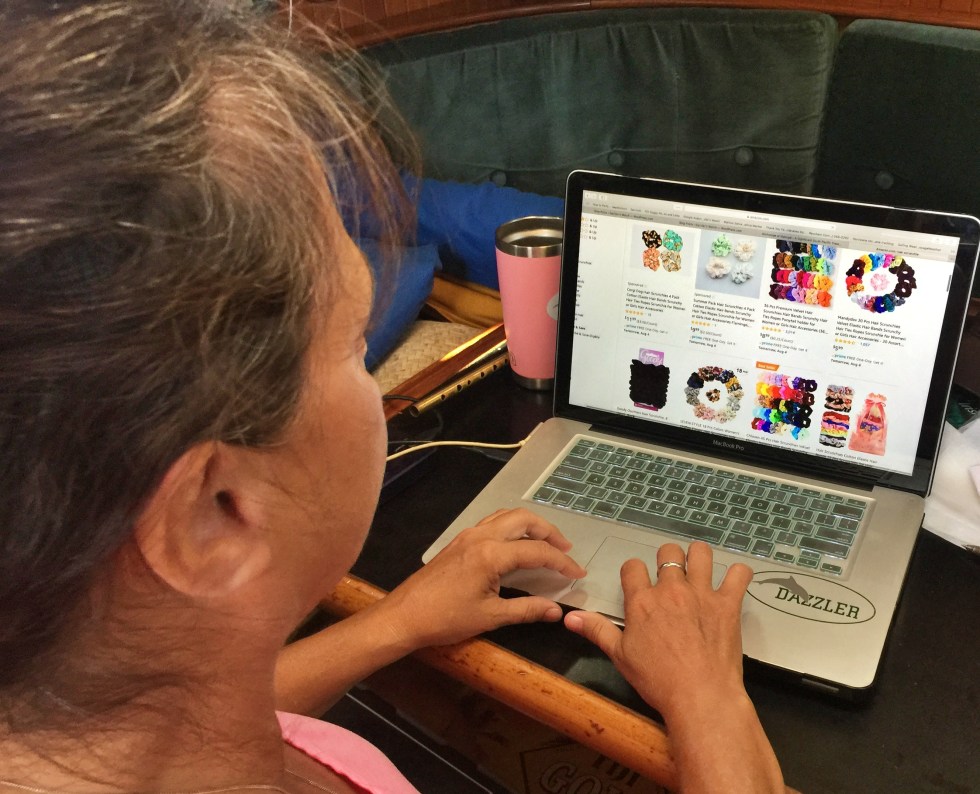 Captain Dan has an upcoming trip planned to the states for some family business. And so the last few months have been sprinkled with deciding what can be purchased and brought back on the return flight. Obviously, boat part replacements are high on the list. But who knew the decision making process for hair bobbles could take several weeks. First of all, let’s define what a hair bobble really is shall we?