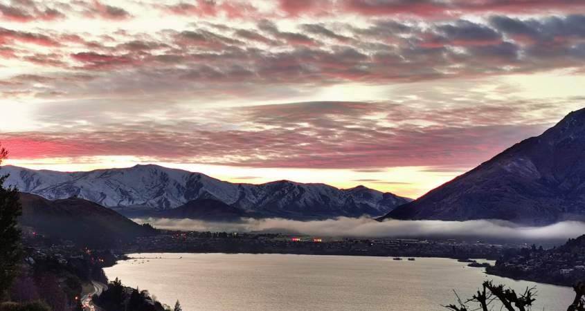 The first morning we awoke to some truly stunning scenery at our perfect little Air BnB. The clouds were low in the valley over Lake Wakatipu as the sun was coming up. There was still ice and frost on the grass from the days of snow they had before we arrived. My feet nearly froze to the large stone outside as I ran out barefoot to snap a few photos. Yes, it was pretty chilly but it was also truly impressive. We all enjoyed the picturesque views from the dining room window as we ate breakfast and planned our days ahead.