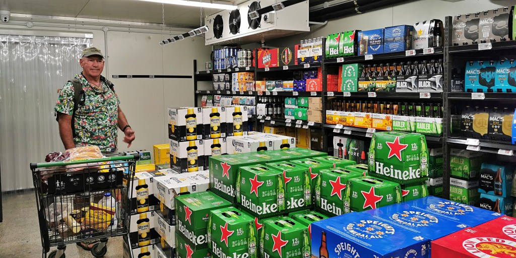 On shore we go to the larger of the two Four Square stores and quickly realize we never needed to leave this place yesterday. This store is much better stocked than the Countdown is in Paihia. So, cruisers coming this way….tuck that little tidbit under your hat. You can save $13 NZD per person on a ferry ride and find everything you’ll likely need or want right here.