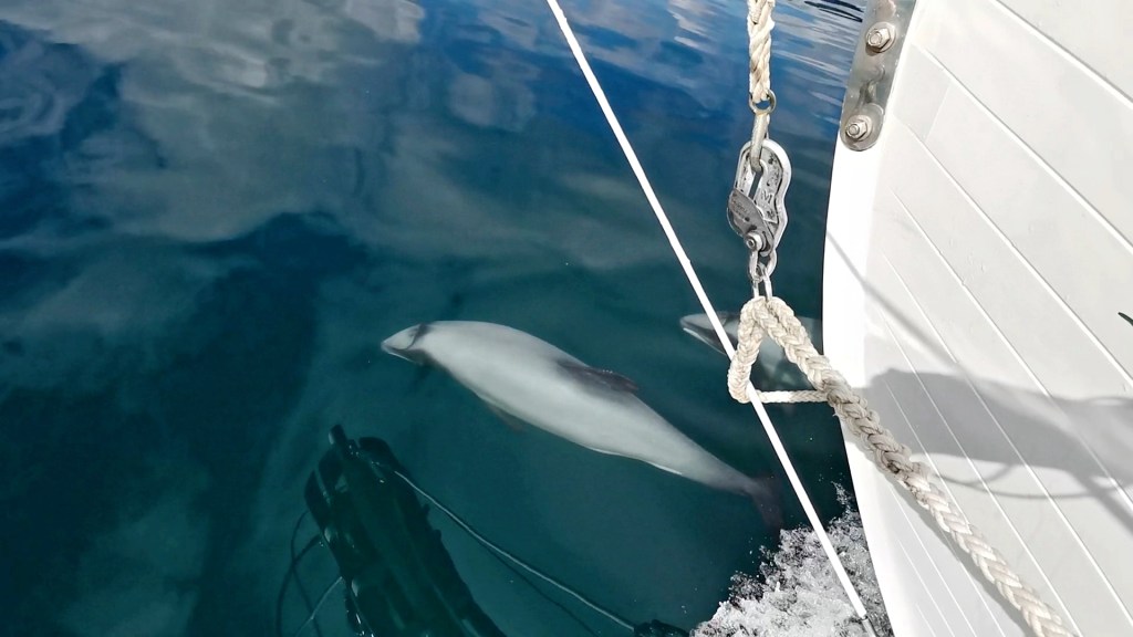 For the next seven days we hopped from bay to bay here in Queen Charlotte Sound. First we met up with our friends Lutz & Gabi and at Fence Bay just 4.77 NM away. On the way there we saw a couple of Hector’s Dolphin. These small (1.5 meter) animals are easily recognizable by their grey bodies and black, rounded dorsal fins. They are so cute I just wanted to reach down, pluck them from the water and give them a giant hug.