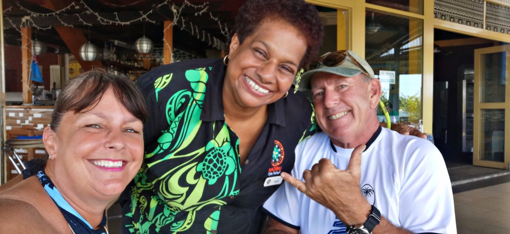 We spent several days in Vuda Marina with our brilliant Fijian family but we had parts on order and it was going to take a week or more so we hopped out to Musket Cove where we’d spent quite a bit of time in 2019. Upon arrival there we were took the dingy into the island bar where we were greeted with hugs once again. Josie, one of the bartenders there was on duty. It was so wonderful to see her beautiful smiling face welcoming us back.