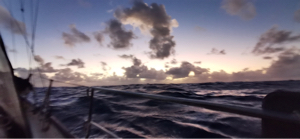 Anyway, we got Dan cleaned up, ate dinner and I went down for my pre watch nap. It’s now midnight and I’m on my last night watch of this journey. It’s wonderful out this evening. The tradewinds are warm, the seas have mellowed out to the promised 1-2 meter long rollers and Dazzler is gently rolling side to side as she cuts a phosphorescent path of bluish green through the ocean.