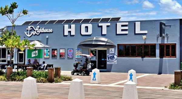 When the daily work was done we’d shower and then head to what has become our favorite pub in the area, the Lighthouse Pub at Burnett Heads. There the AC is super cold and the beers are even colder. And the food is really excellent. I don’t know where they get their chickens but the filets they use in the chicken parmesan there are absolutely HUGE! They always make for two meals for me. I guess it’s a big country so they have big chickens.