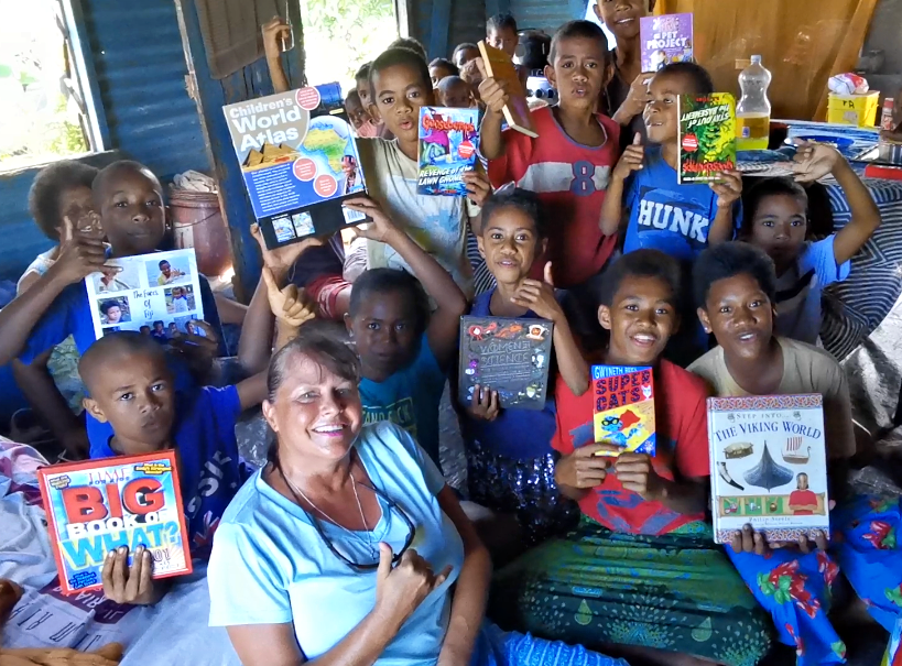 When we were here in 2019 we were told that no cruisers had come ashore to visit the villagers in over three years. It always seems such a shame to hear this as the locals are so wonderful to visit. There is a large school here in the village and we visited it when we came the first time. When we asked if there was anything we could bring them if we came back the answer was, “Books! Please, bring reading books.” Seems this is a common theme among the educators here in Fiji.