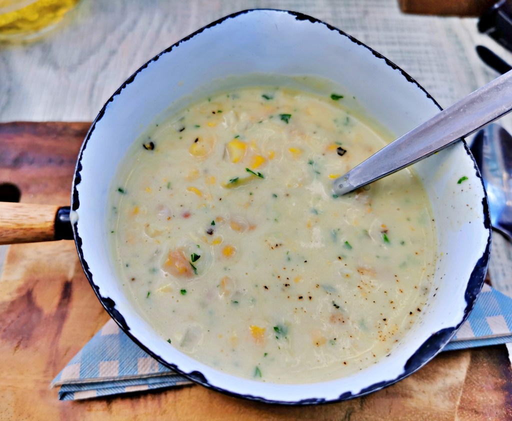 It was the Saturday before Easter and a simply gorgeous day so people were everywhere and the restaurants were packed. We picked the Crab Shack and are glad we did. It’s the only place we’ve found in New Zealand that sells creamy, New England style clam chowder and boy was it AMAZING! It was so good we went back to this place a few days later. Our server, Ben, was really great and we enjoyed the entire experience.
