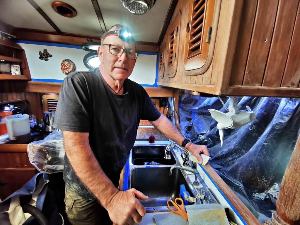 The saloon cushions would be removed during the process which would make it a bit uncomfortable. We decided to be a bit more comfortable and decided to acquire an Air BnB that was about a block away from Dazzler during the cushion construction phase. While off the boat, I decided to add a little face lift to the galley and navigation station varnish as well.