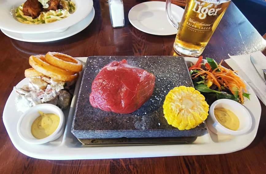 We’re wild about their stone grilled steaks! There’s nothing better than having a big hunk of rump steak served on top of a 400°C stone. Oh yeah….cook it yourself to the perfect doneness! They do have other things on the menu such as ribs, fish, burgers and more. And don’t forget to get a large handle of Tiger or one of their craft beers to wash it down! Jimmy Jack’s is a friendly, fun and tasty place to go. When you stop by, be sure to tell Sonny and the team we said, “Hello”.