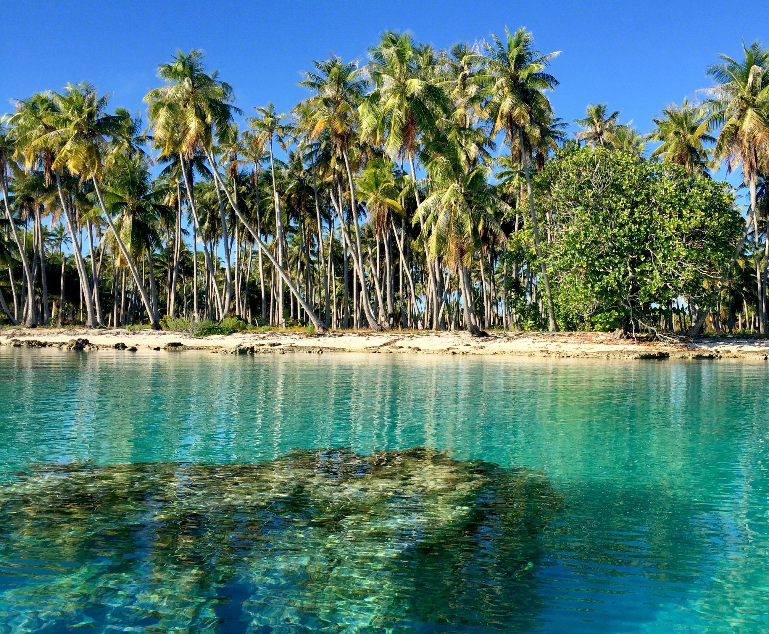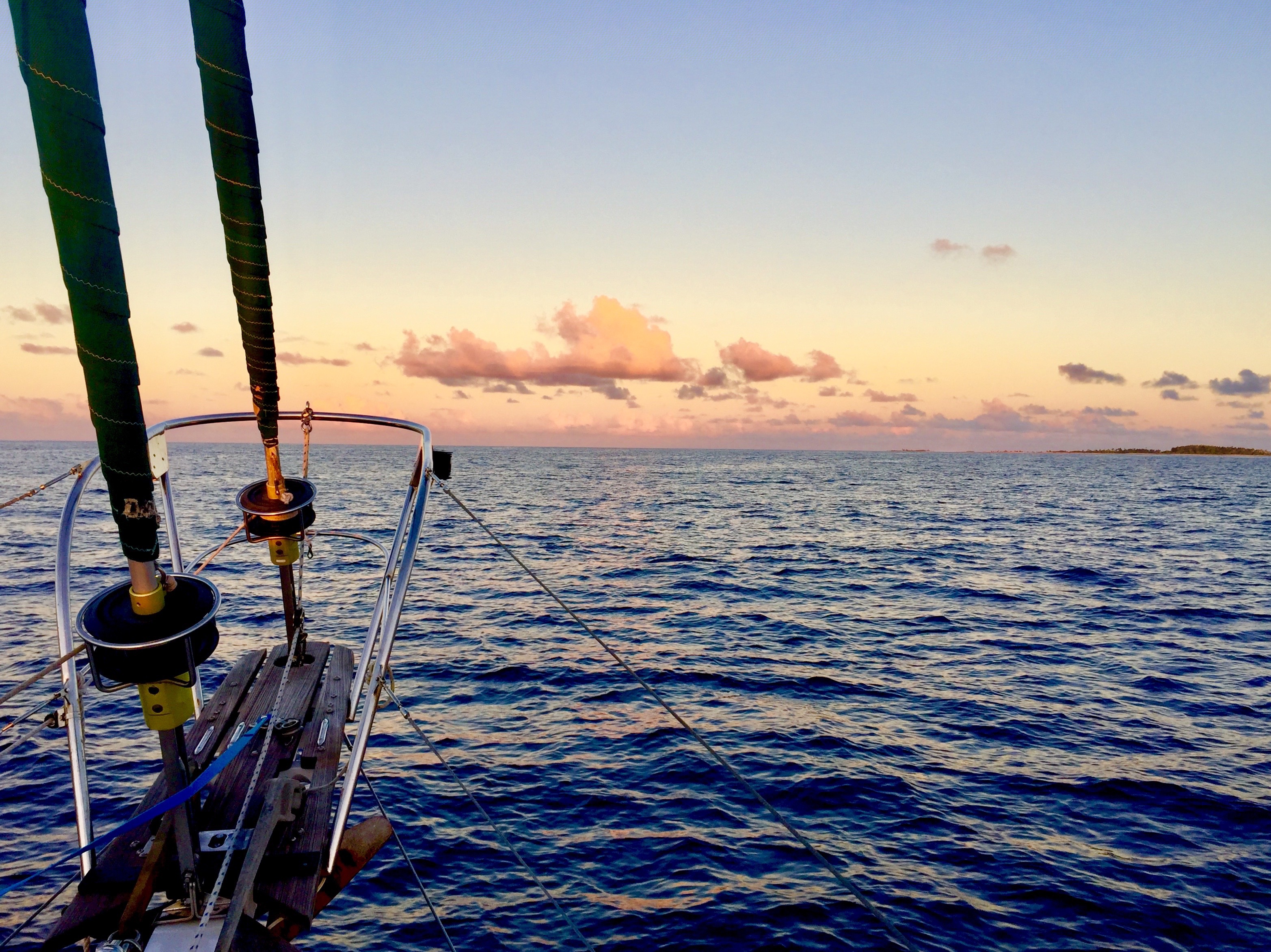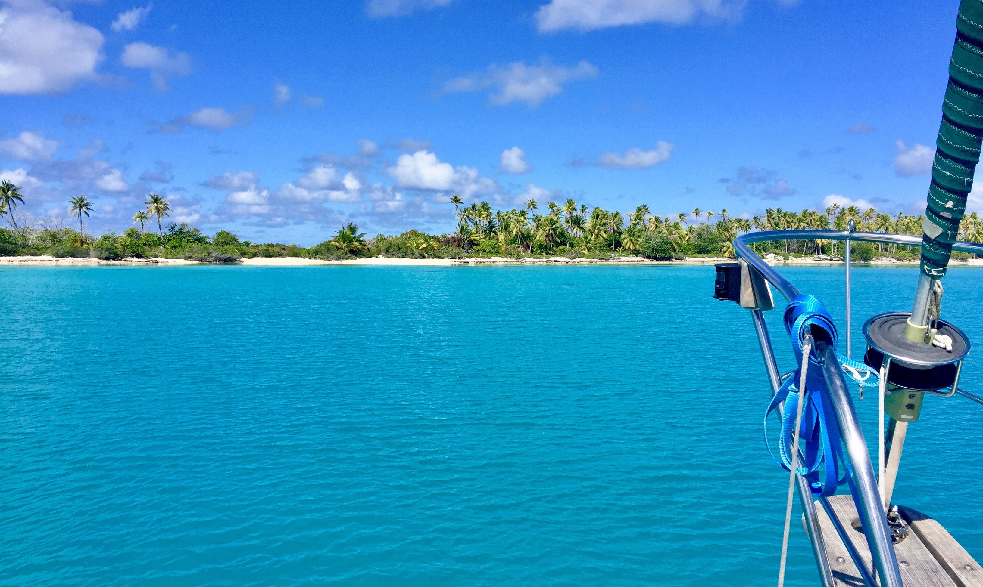 Kauehi in the Tuamotus is the first atoll we visited. Fortunately it was a pretty easy one with not too bad of a current. The water is the most beautiful we’d seen yet as Jilly was on the bowsprit seeing the bottom at over 100′!