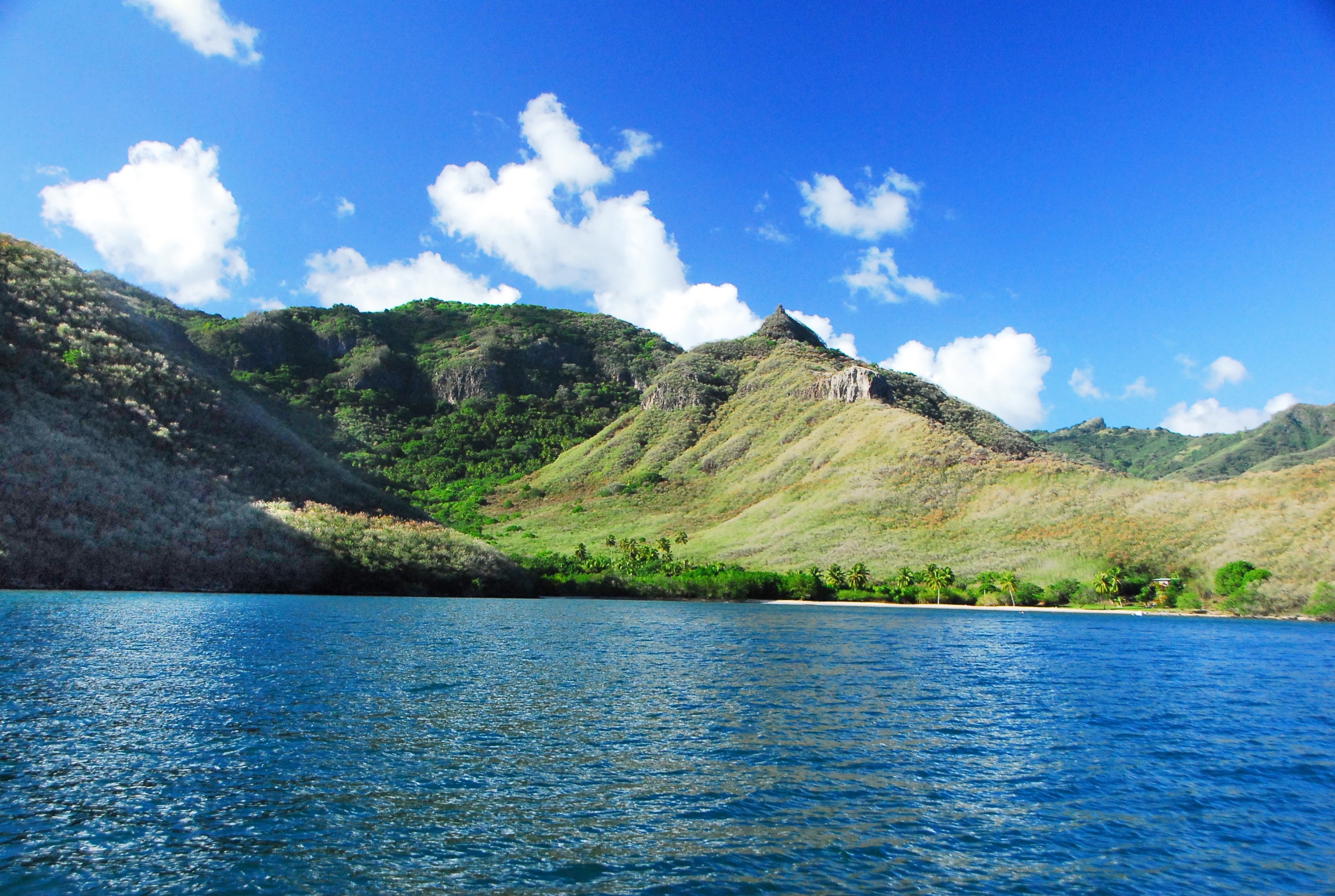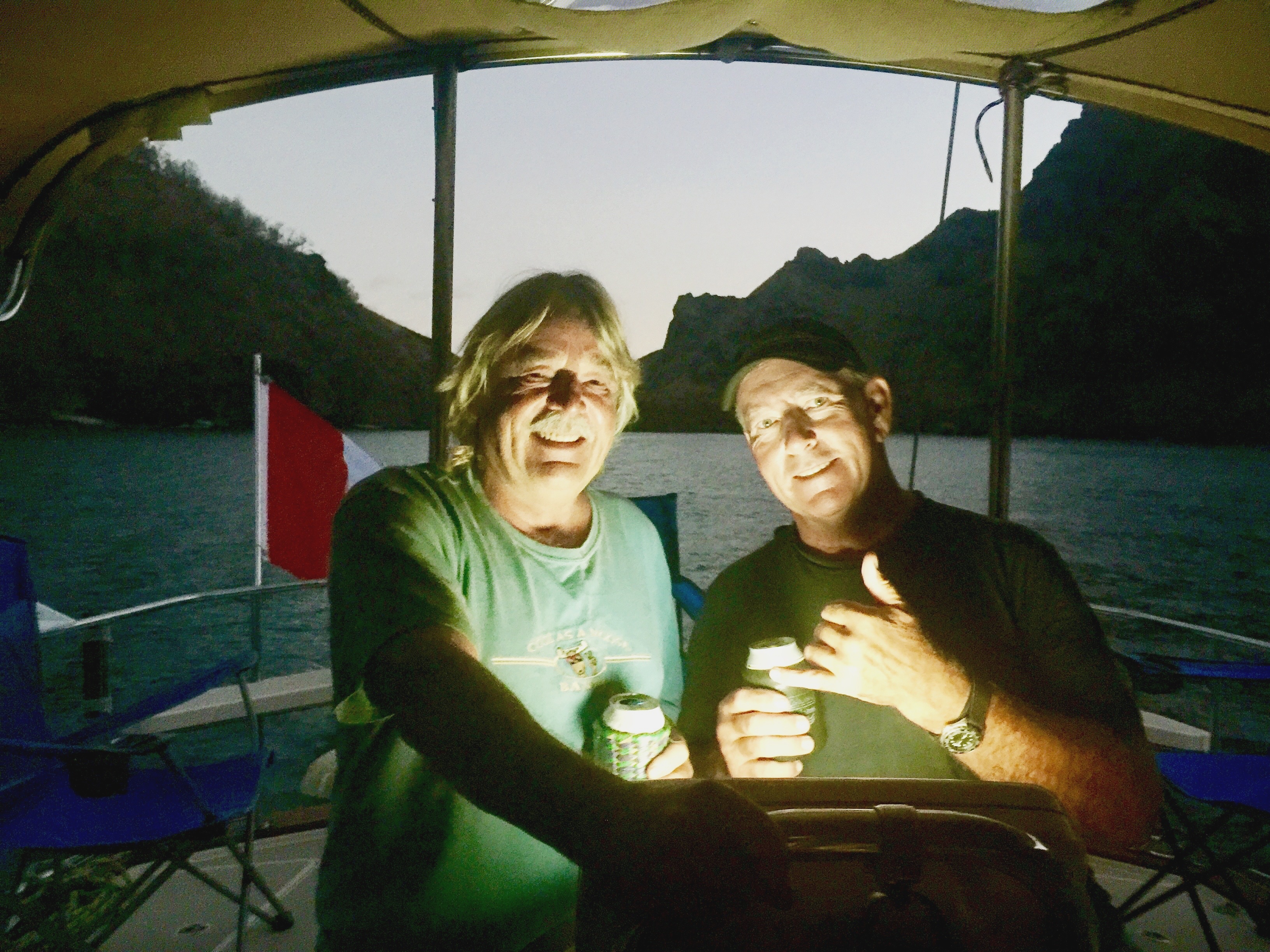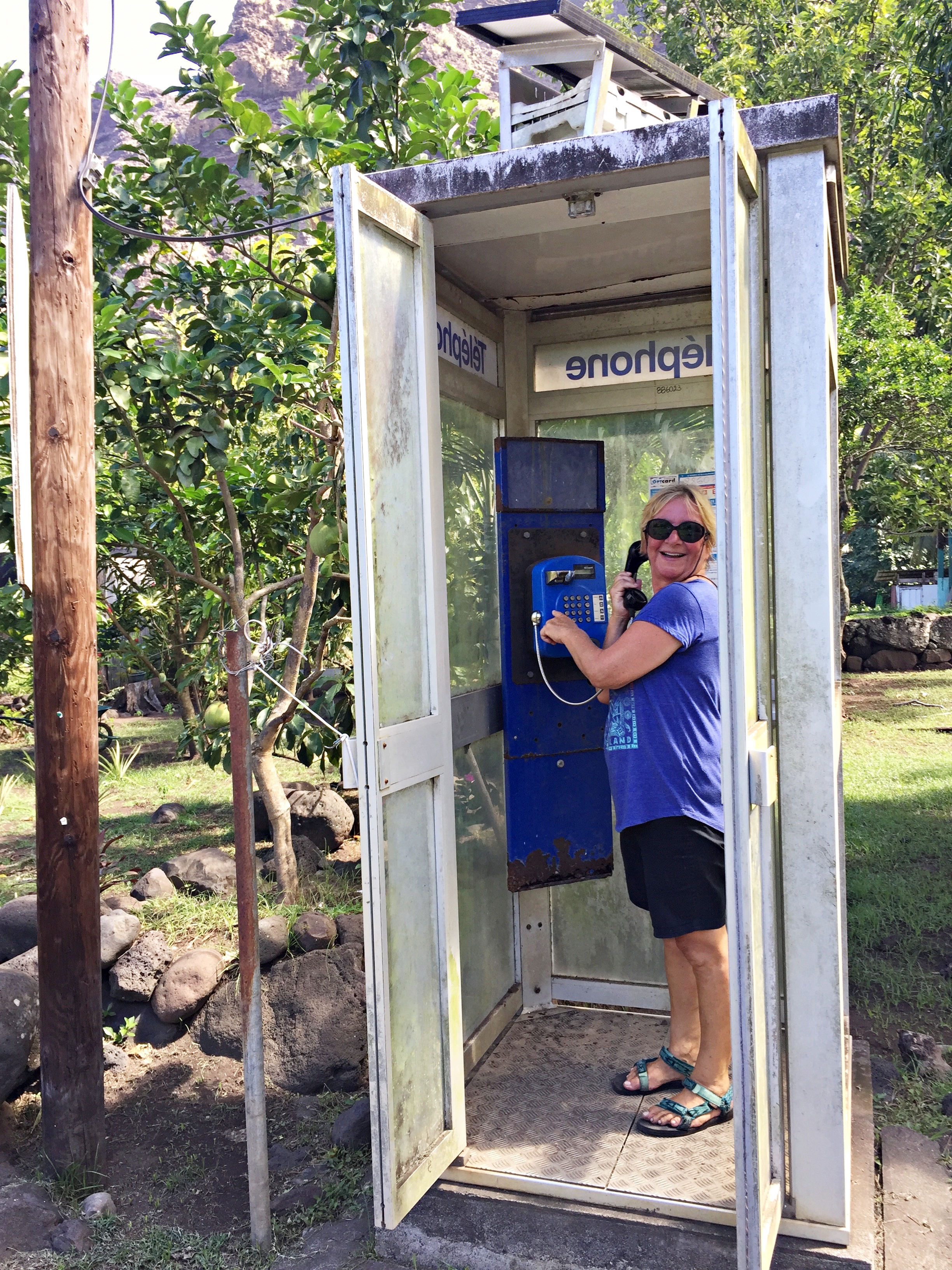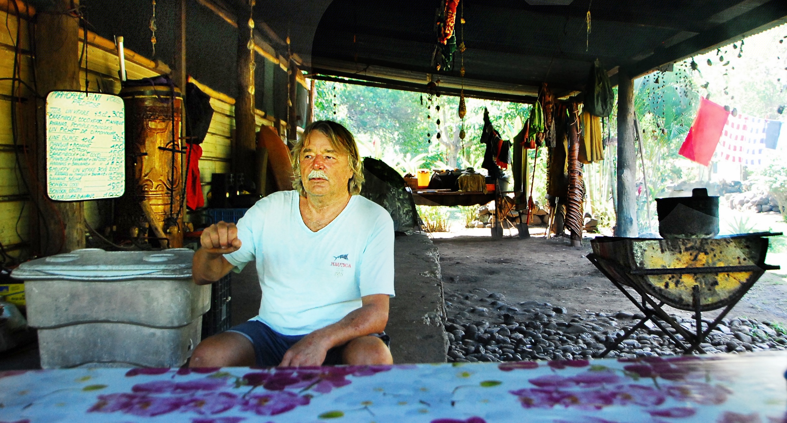 Daniel’s Bay on Nuka Hiva was made famous by the Survivor TV show. You can still see evidence of the television production on the island in the way of signs etc… We enjoyed several wonderful days here but don’t go swimming. We saw more sharks in this bay than we saw throughout the entire trip from Mexico to New Zealand! One day we had about a five foot hammerhead swim right beside the dink. Not ten minutes later, off the side of the boat we saw a large black tip come clean out of the water to snatch its pray. Our friend Ernie, of SV Patience, was fishing here and had a very large bull shark chase and ultimately take his fish while he was fishing from his inflatable dink. Nope…no swimming for us.