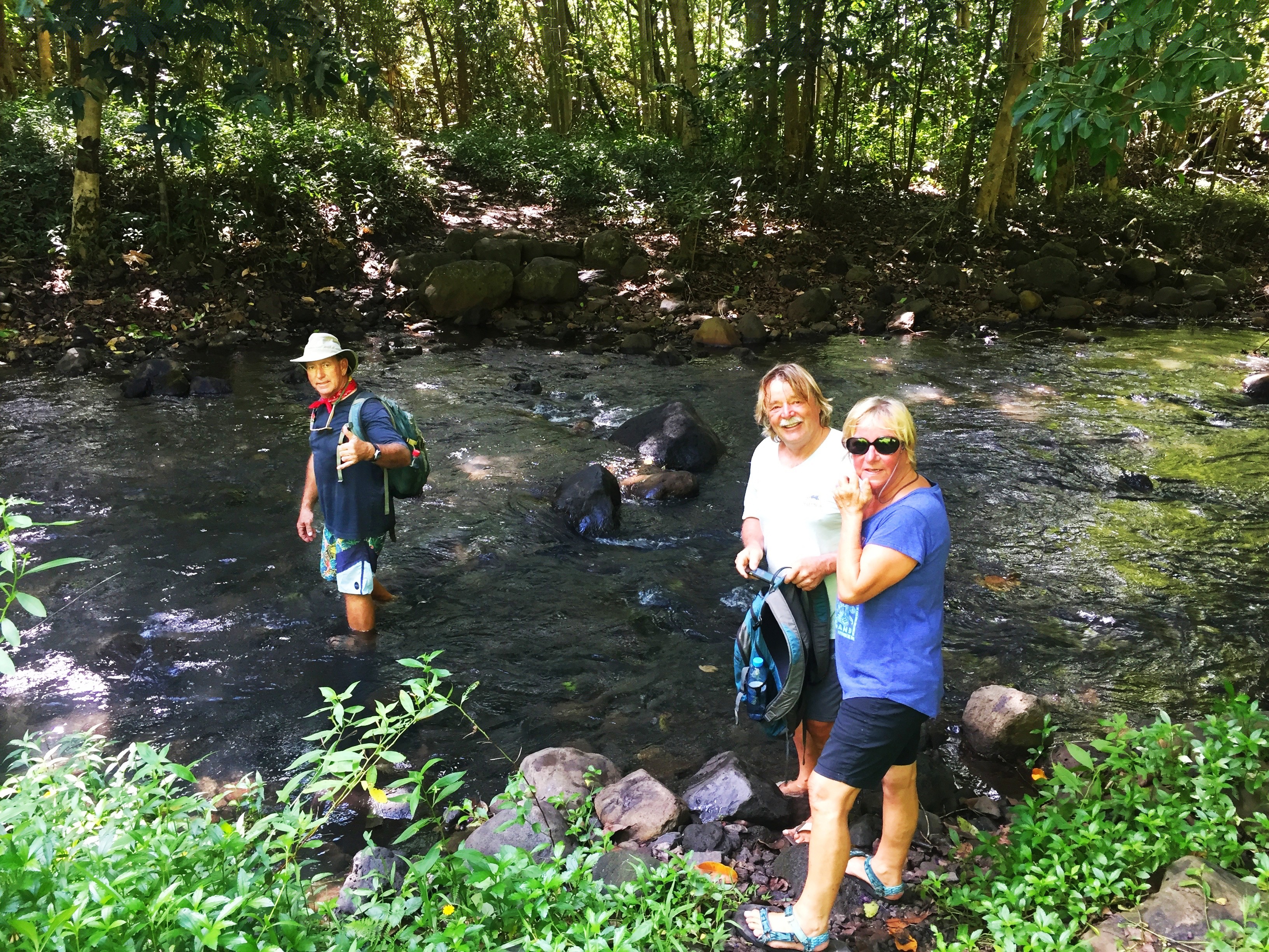 We did the hike to the waterfall which was pretty tough in the hot and humid conditions. Actually we didn’t even get all the way to it but we did get to where you can see it. We met Teike and his wife who sold us fresh juice and homemade ice cream after our walk to the falls.