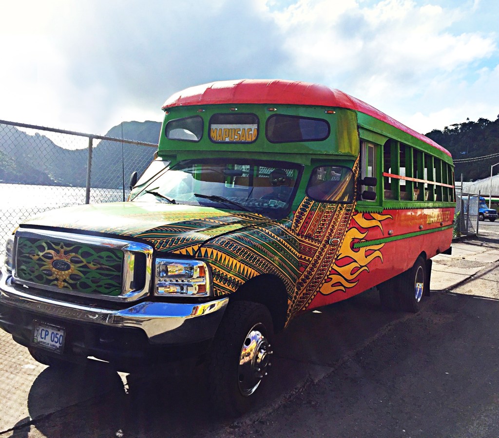 First of all, you’ll really miss part of the American Samoa experience if you don’t take a ride on one of their buses. These things are fantastic! Each one is painted completely different and the insides are decorated differently as well. All have the same hard wooden bench seats but the experience on each bus is a completely unique event. Some have big TVs playing Samoan music videos and other have fur lined dashboards with crosses hanging from the ceiling. For $1 USD you can ride just about anywhere so even if you don’t have someplace you need to go, just go joyriding. It’s a great way to see the island and get to know some of her people. If you aren’t sure which bus you need, just ask the locals they are more than happy to help direct you. Even the teenagers were fantastic sources of information.