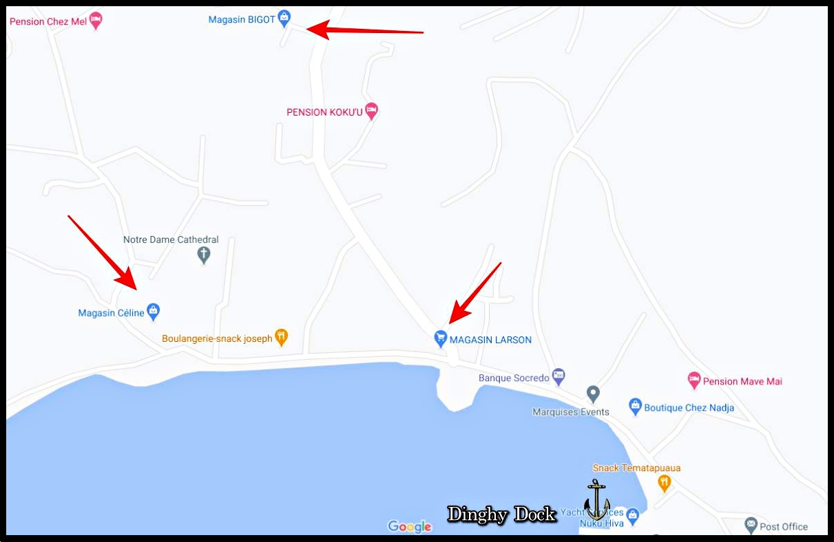 There are three magasins in town where you can restock your provisions. The best time to go for bread is first thing in the morning. If you aren’t there by 9 or 10 you probably won’t get any fresh bread. Late in the day or first thing in the morning after the Aranui supply ship comes in is the best time for everything else. Be aware, meats are quite expensive. We got some chicken breasts there and about passed out when we realized what we’d actually paid for them. It was a shocking $27 USD for two chicken breasts! But, then again, it’s an island and everything is being shipped here from somewhere.