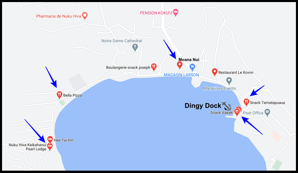 There are actually several great places to eat around the area. And, most of them offer free wifi which is always a bonus as internet in the Marquesas is sketchy at best.