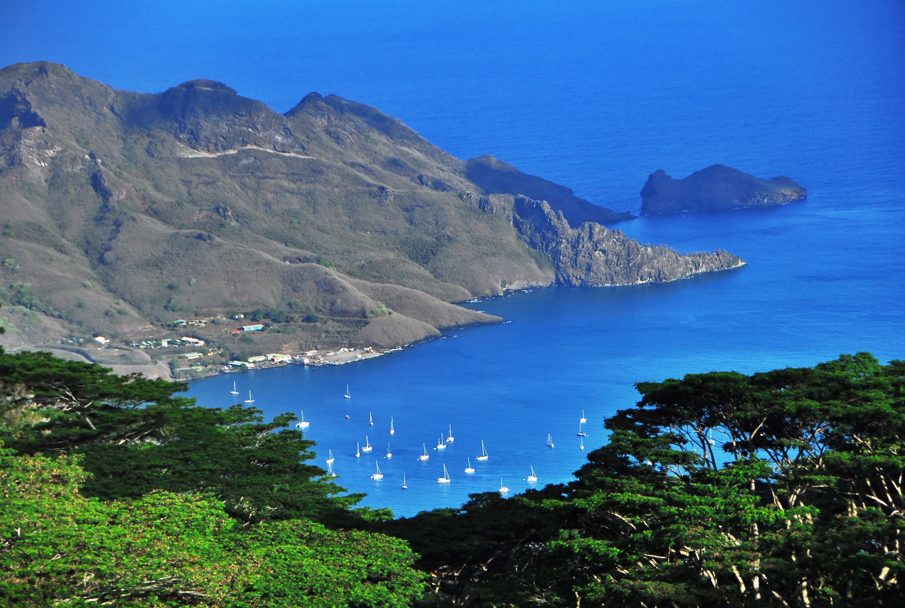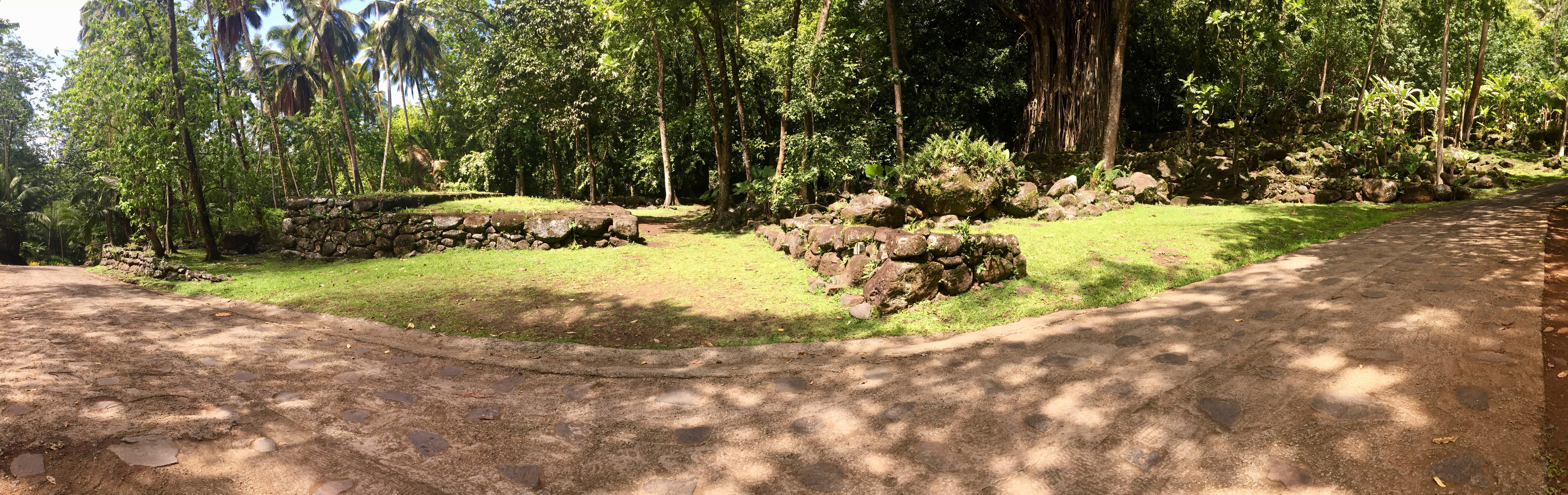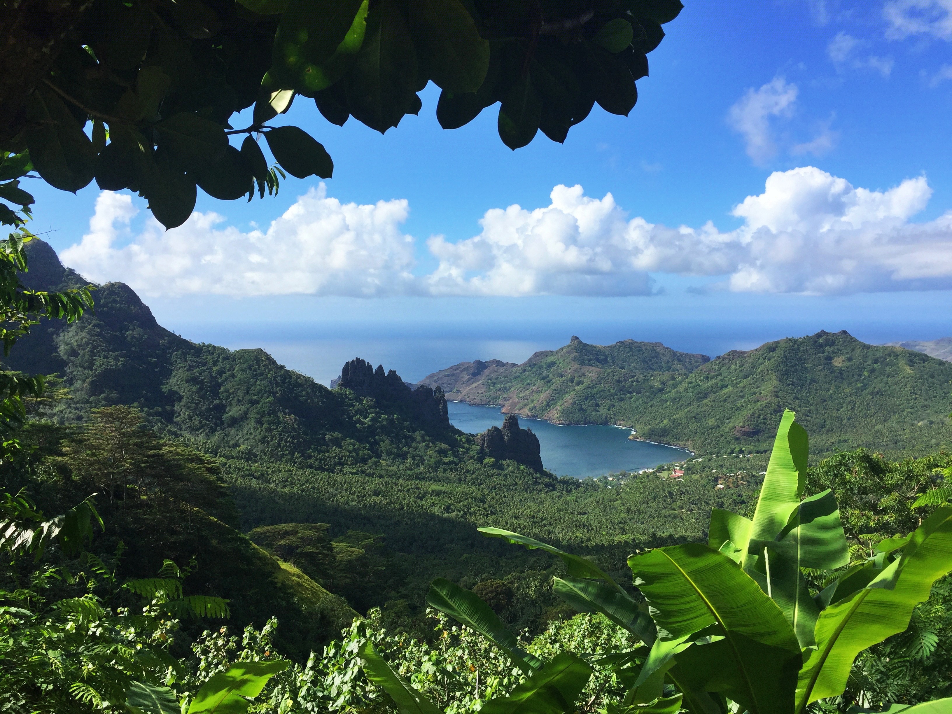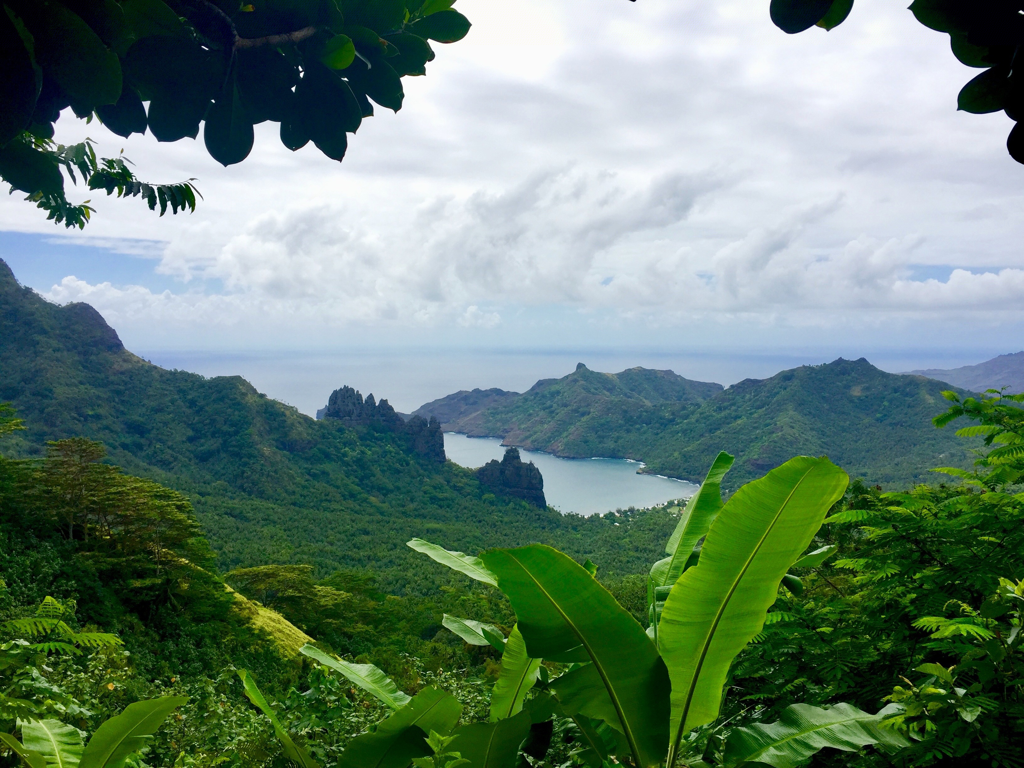 Here’s a map showing the route we took to Hatiheu. Along the way you will pass some sacred grounds which are wonderful to explore. They are called Kamuihei, Tahakia & Teiipoka and these three connected sites make up the largest excavated archeological site on Nuka Hiva. Also, don’t miss the lookout over the forest toward Taiohae Bay at Tekeika. That first picture below is from Tekeika.