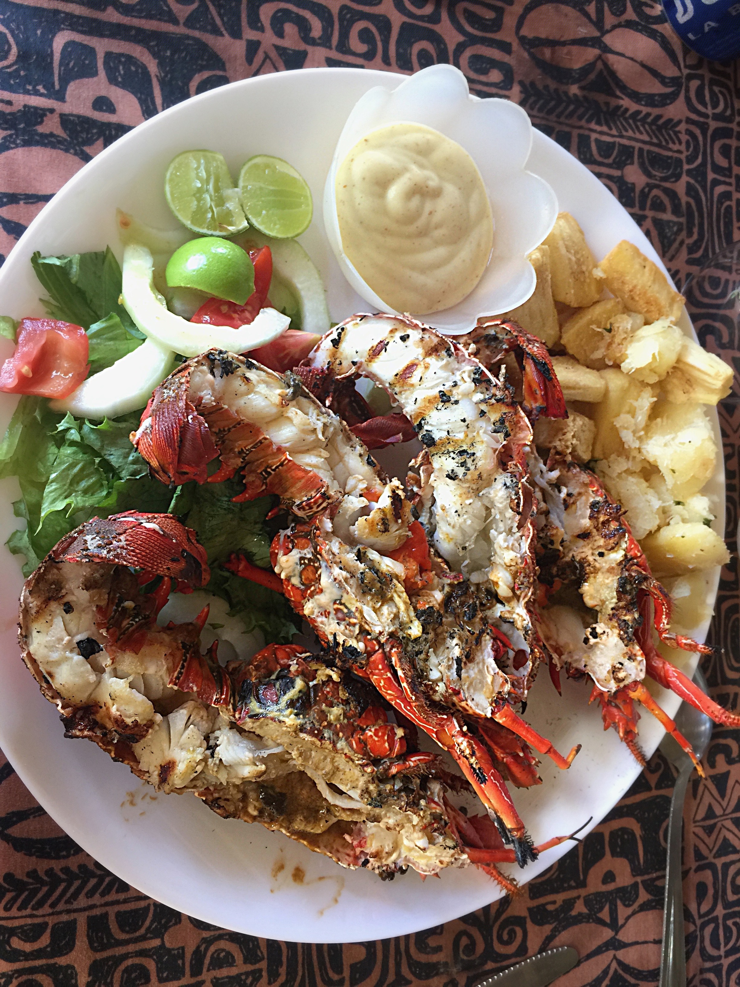 When we reached Hatiheu Bay we stopped for lunch at Chez Yvonne were we had an amazing Lobster meal. The outdoor seating provided wonderful, warm tropical breezes and beautiful scenery overlooking the bay.