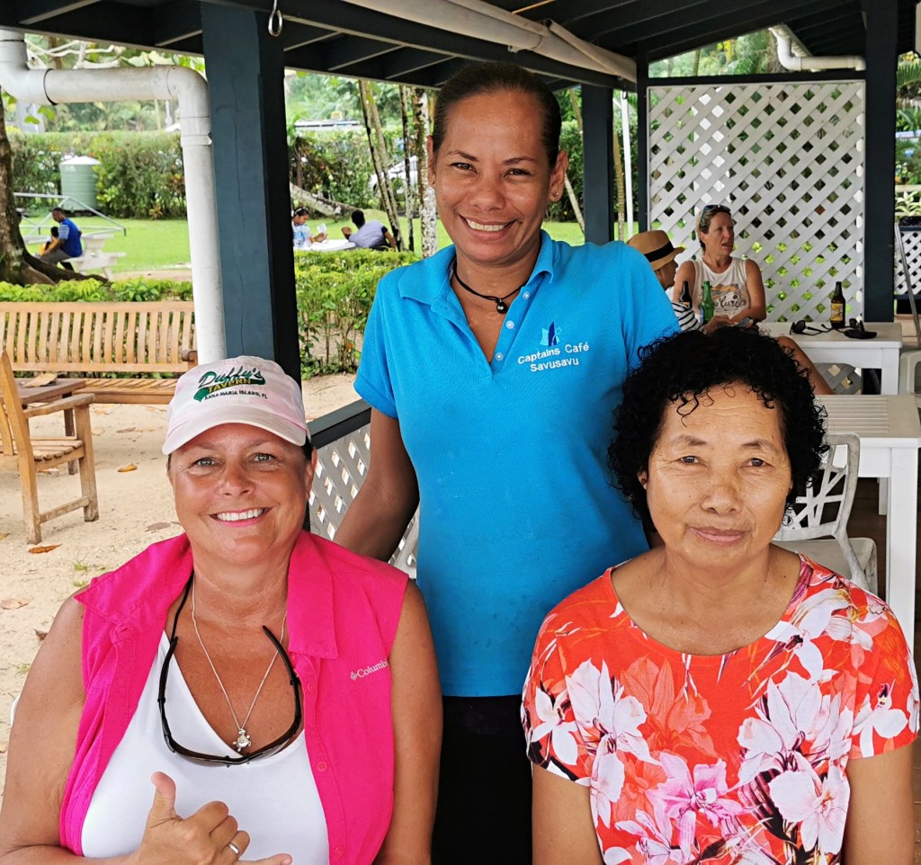 On this trip we were fortunate enough to be able to secure one of their moorings for the entire duration of our stay. We spent ten nights in Savusavu and enjoyed it as much as we did in 2019. Our mooring was directly across from the open air market and just a short jaunt to the SYC. And, on our first day in port we had the wonderful pleasure of meeting up with Sereana. She’s the sister of our dear friend Va from Nadi. The women we laid eyes on Sereana we knew she was Va’s sister. She works at the bar at SYC. Not long after we began to enjoy our first beer Sereana introduced us Vilomena…their mother. We instantly felt like we had family here.