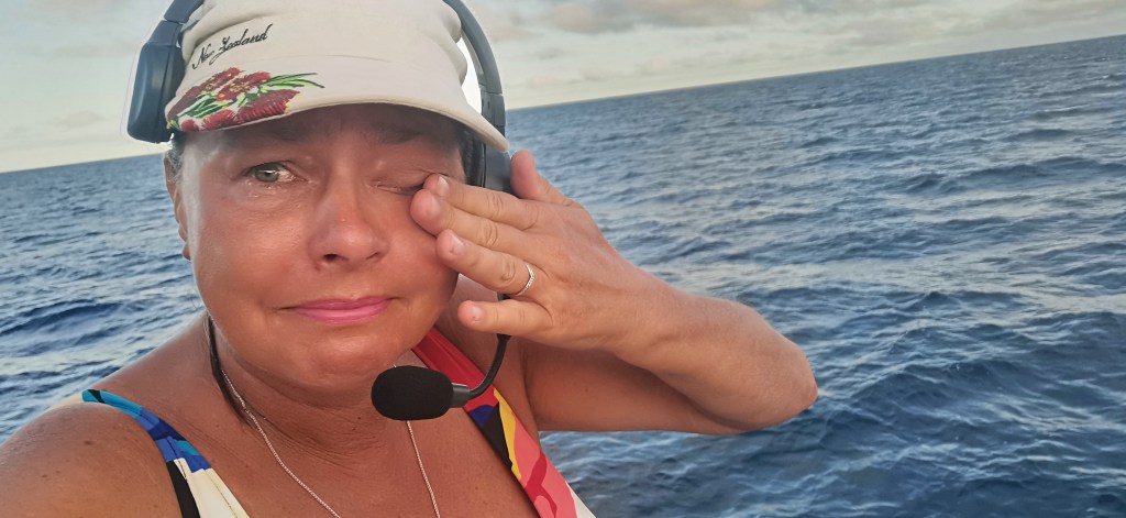 The most wonderful treat we had…aside from Veejay’s food…was the night before we were leaving. We’d just come back to Dazzler and put Sparkle on the foredeck when I received a text message from our friend Va. She was actually here in Savusavu at the yacht club. I explained that we were unable to come in as the tender was loaded on deck and before we knew it she’d hired a longboat to come out to Dazzler to see us. Yes….I think it’s safe to say we’ve amassed a few very good friends here in Fiji.
