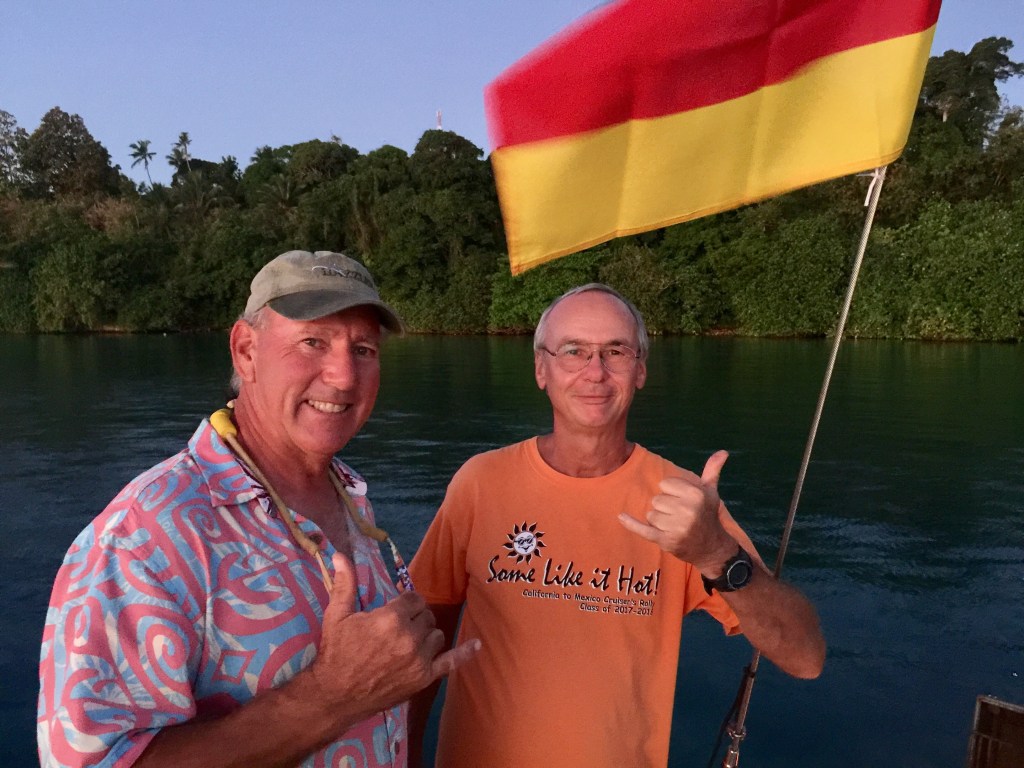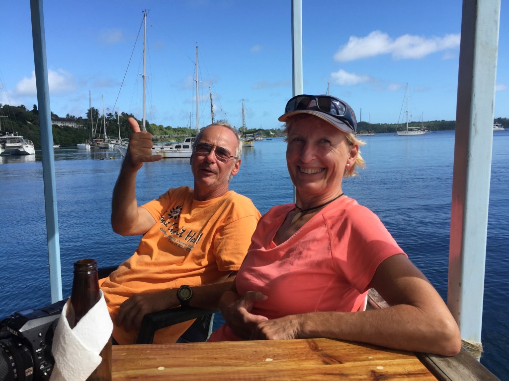 The morning radio net starts just about the time we pop open our beers so we settle in to hear what’s going on here. Sounds like the usual suspects on the radio. There’s Bear from Falaleu Deli, Barry from Hunga Haven Resort and rest of them. We don’t hear any cruises that we know but then we are a few weeks ahead of most who left New Zealand. We kind of like it this way. It’s nice and peaceful!