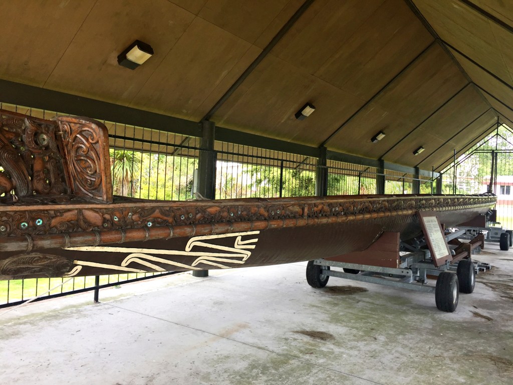 Hundreds of years ago the Māori people would greet strangers entering their harbors in wakas such as this one. Huge war parties would enter the harbor to intercept and intimidate the intruders. Today they are used in competitions and ceremonial events.