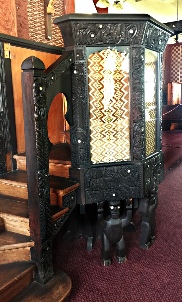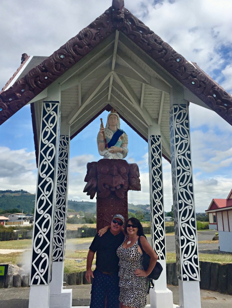In the village they house the oldest bust of Queen Victoria in the world. It’s a wooden bust commissioned by Agent-General Isaac Featherston in 1873. It is said to have been given to Te Arawa in 1875 to honour the tribe’s efforts as an ally of the British Empire during the New Zealand Wars. The bust stands atop of a pillar about 10′ in the air. We were encouraged to have a photo taken with it as there is currently much political conversation regarding it and they fear it may not rest here much longer.