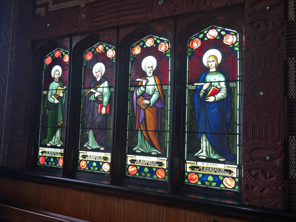 Our final stop in the Ohinemutu Village was at St. Faith’s Church. For a small donation you can enter this absolutely beautiful tudor style church built in 1914. There are many wood carvings, panels and beautiful stained glass depicting scenes of the bible as well as scenes of the world. They even have a stained glass image of Jesus wearing a Māori cloak that makes Him appear as if He’s walking across Lake Rotorua. Unfortunately it was cracked and now has tape on it to hold it together but it was still a wonderful sight to see.