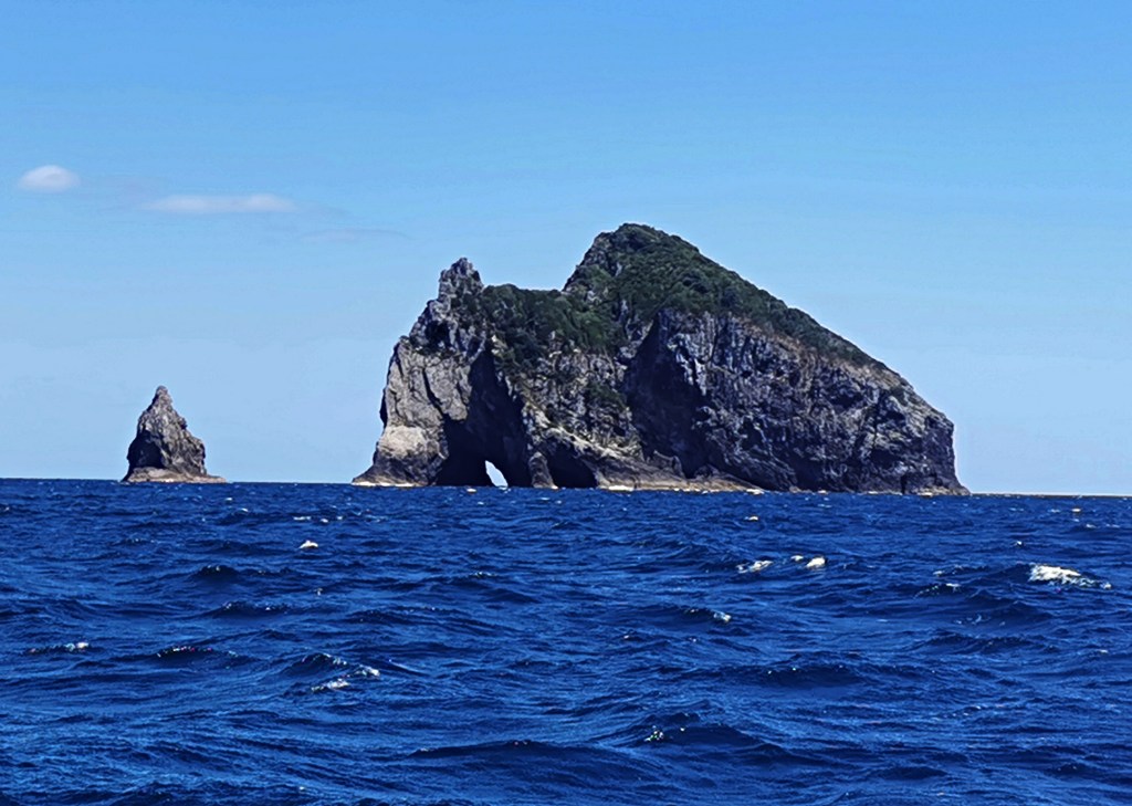 Before leaving the bay we put up the main and then make our way to the ocean. It’s another gorgeous day here. The winds are perfect for sailing and we’ve got a nice tail current pushing us along. The further north we get the more incredible the coastline looks. Soon we see Cape Brett in the distance. I remember seeing the light from the lighthouse there on our first trip into New Zealand in 2018. I was on watch that night and was delighted to see the first lights of New Zealand. It had been a pretty rough trip down from Tonga so seeing this beacon of light made me feel like we were almost home. Of course we’d traveled some 7500 NM to get here. Anyway, it was sort of nice to see the lighthouse once again.