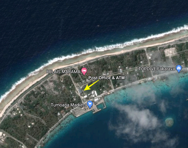 The ATM is located directly beside the post office which is just up the road from the main dock where the supply ship docks. (See Below) They have a maximum of 25,000 XPF per transaction but you can do back to back transactions. The most we did was two back to back. Just one more reason to bring cash from Nuka Hiva.