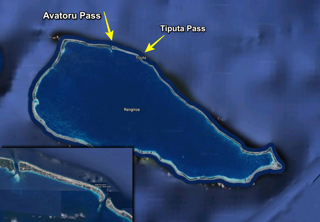 When we left we went out of Avatoru pass as we were headed towards Papeete. We left an hour or so before sunset as the Soggy Paws Guestimator indicated that was best time and we had no issues. If you look just to the west of the Avatoru pass you’ll see some boats that weren’t so lucky.