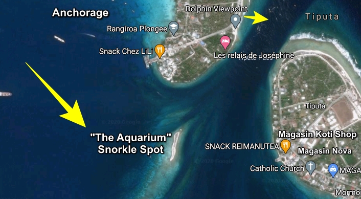 If you just want a nice snorkel we highly recommend checking out the “Aquarium”. This is an area to the west of Tiputa Pass. They have moorings their for your dinghy too. The water is crystal clear, the coral beautifully colored and alive and you will see lots of fish.